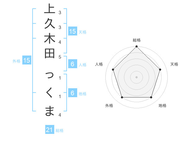 上久木田 っくまさんを姓名の画数から五運を鑑定