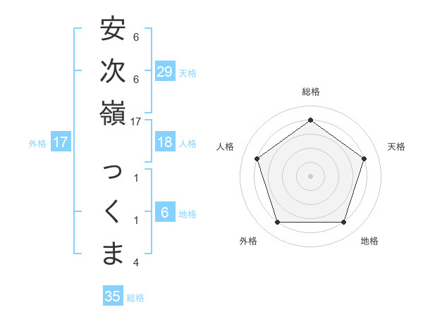 安次嶺 っくまさんの総格は35画の4点!