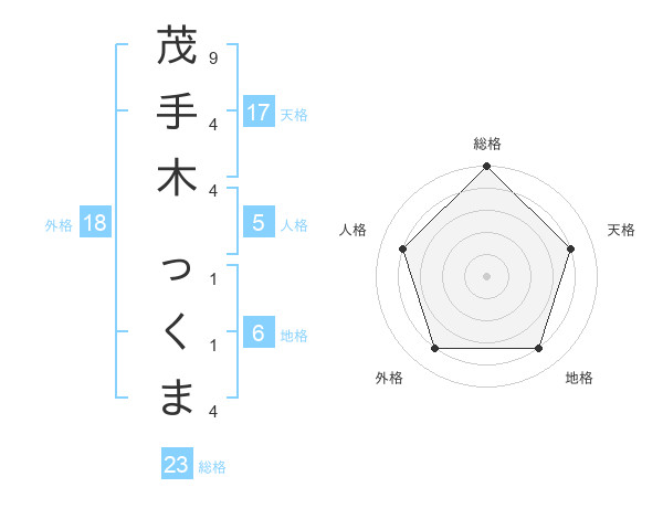 茂手木 っくまさんの総格は23画の5点!