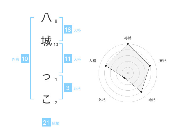 八城 っこさんの総格は21画の5点!