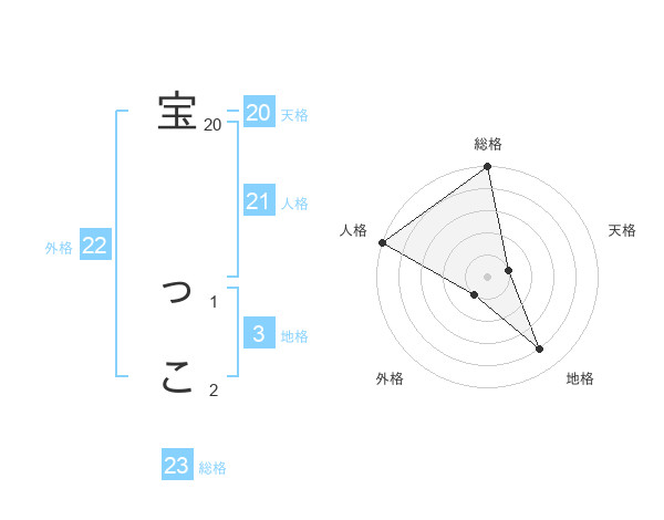 宝 っこさんの総格は23画の5点!
