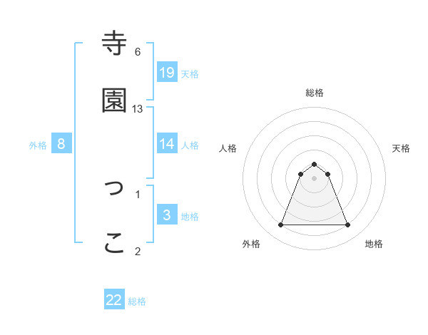 寺園 っこさんの外格は8画の4点!