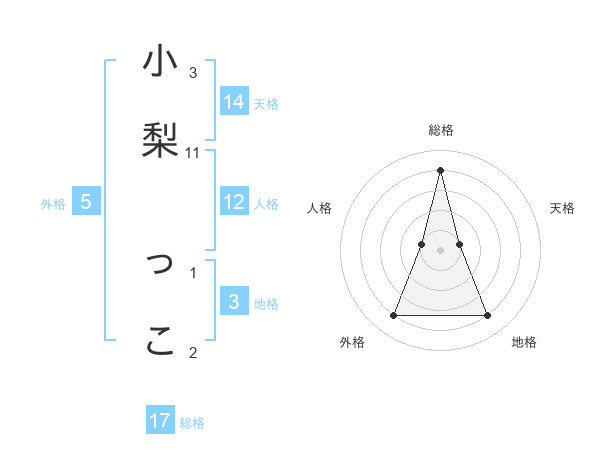 小梨 っこさんの総格は17画の4点!