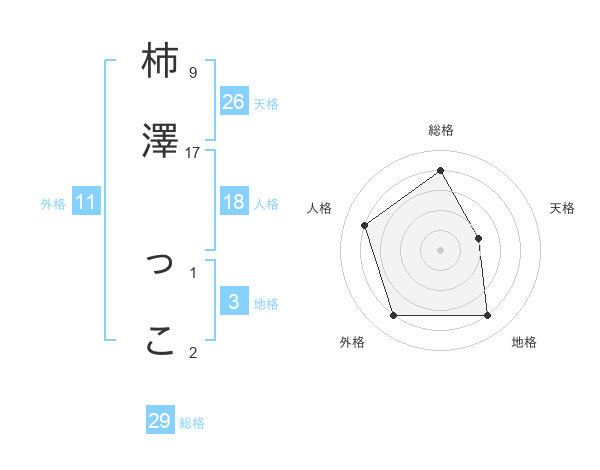 柿澤 っこさんの総格は29画の4点!