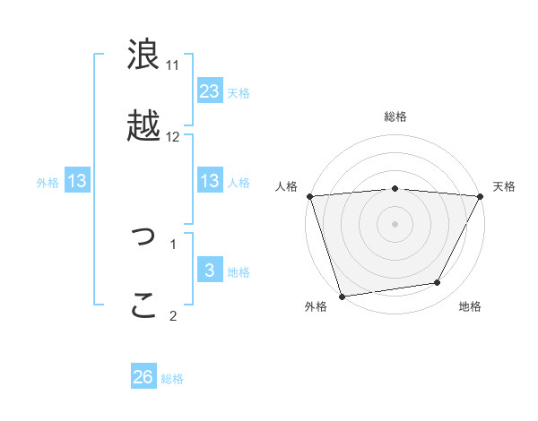 浪越 っこさんの外格は13画の5点!