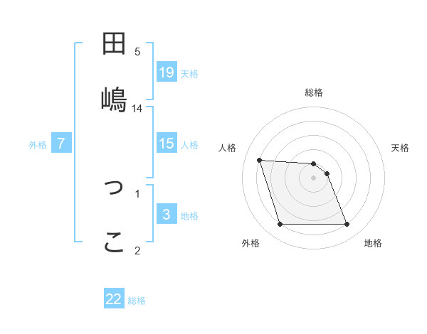 田嶋 っこさんを姓名の画数から五運を鑑定