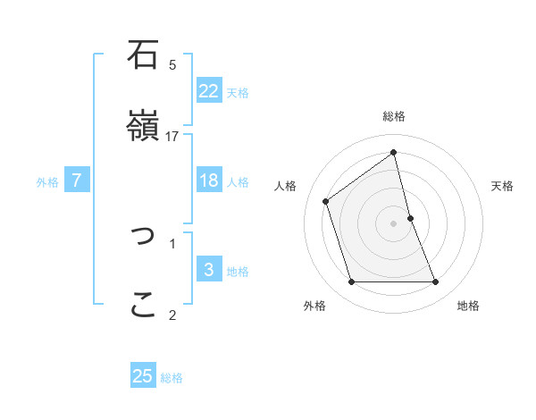 石嶺 っこさんの総格は25画の4点!