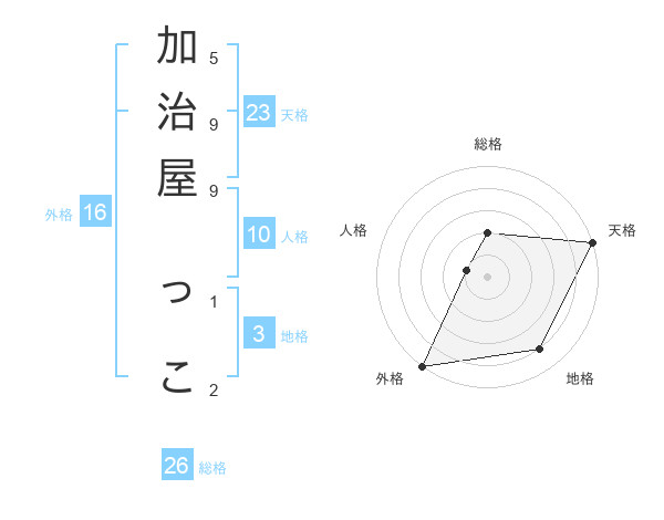 加治屋 っこさんを姓名の画数から五運を鑑定