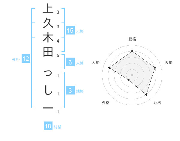 上久木田 っしーさんを姓名の画数から五運を鑑定