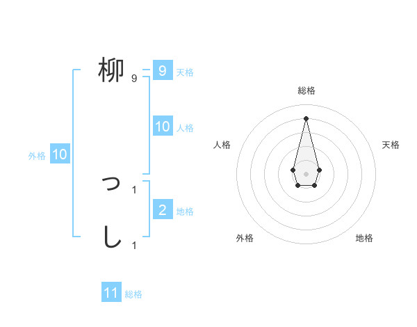 柳 っしさんの総格は11画の4点!