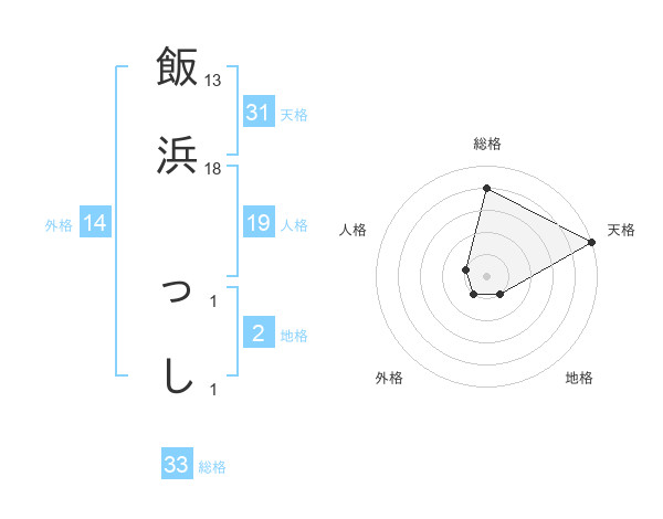 飯浜 っしさんを姓名の画数から五運を鑑定