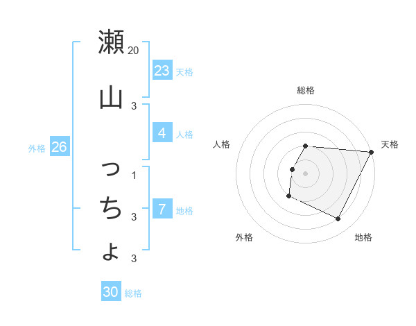 瀬山 っちょさんの天格は23画の5点