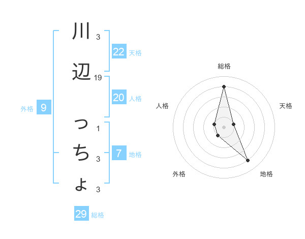 川辺 っちょさんの総格は29画の4点!