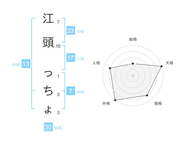 江頭 っちょさんの外格は13画の5点!