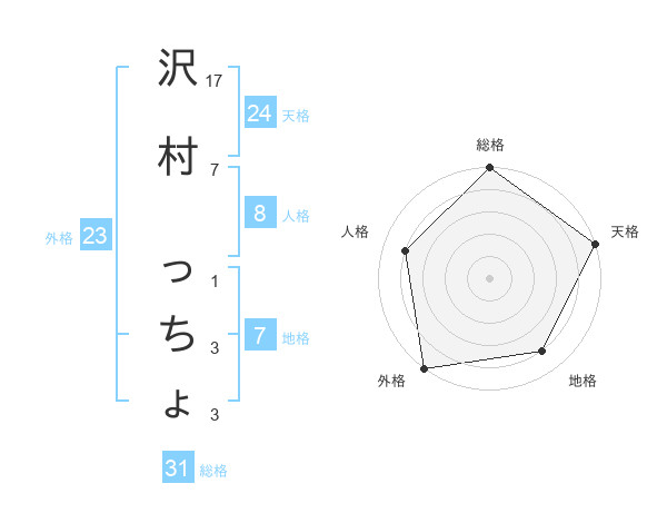 沢村 っちょさんを姓名の画数から五運を鑑定