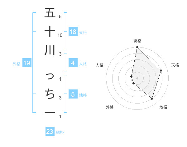 五十川 っちーさんを姓名の画数から五運を鑑定