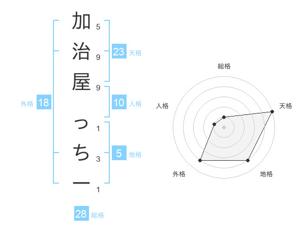 加治屋 っちーさんを姓名の画数から五運を鑑定