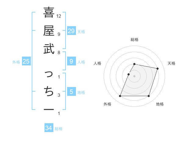 喜屋武 っちーさんを姓名の画数から五運を鑑定