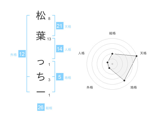松葉 っちーさんを姓名の画数から五運を鑑定