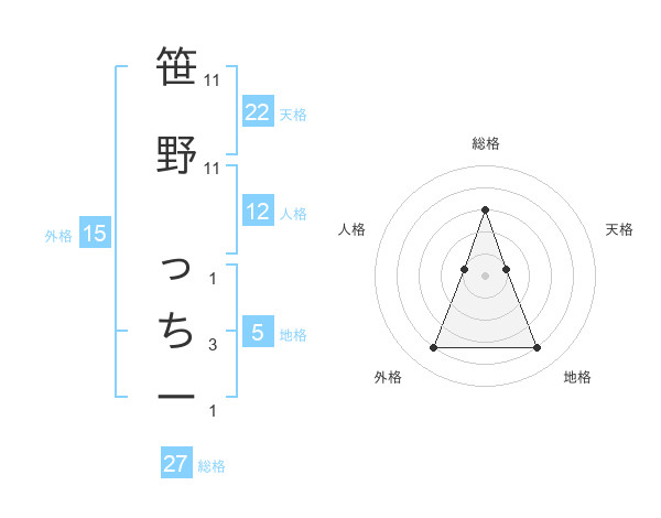 笹野 っちーさんの天格は22画の1点!