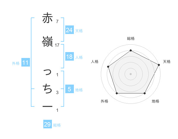 赤嶺 っちーさんを姓名の画数から五運を鑑定