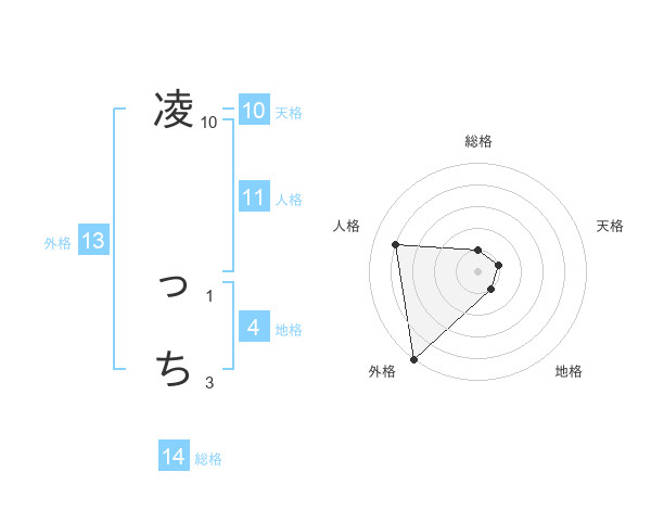 凌 っちさんの総格は14画の1点!