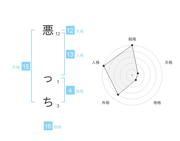 悪 っちさんの外格は15画の4点!