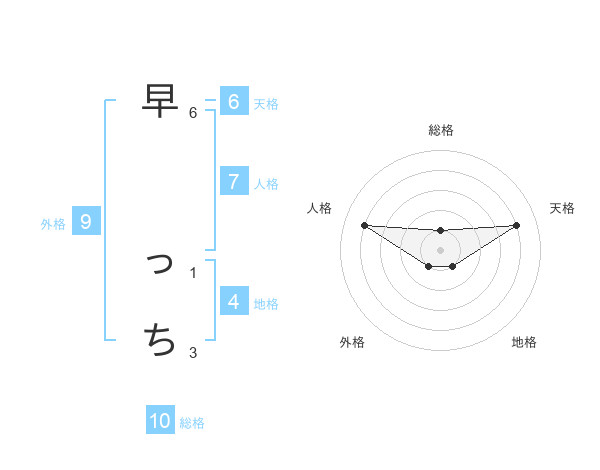 早 っちさんの総格は10画の1点!