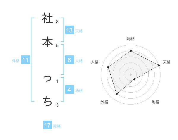 社本 っちさんの天格は13画の5点!
