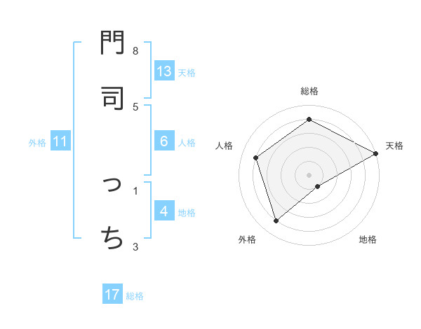 門司 っちさんの総格は17画の4点!