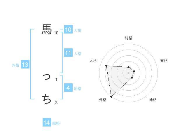 馬 っちさんの総格は14画の1点!
