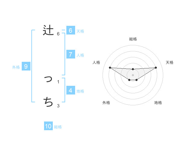 辻 っちさんの天格は6画の4点!