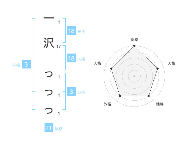 一沢 っっっさんを姓名の画数から五運を鑑定