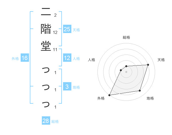 二階堂 っっっさんを姓名の画数から五運を鑑定