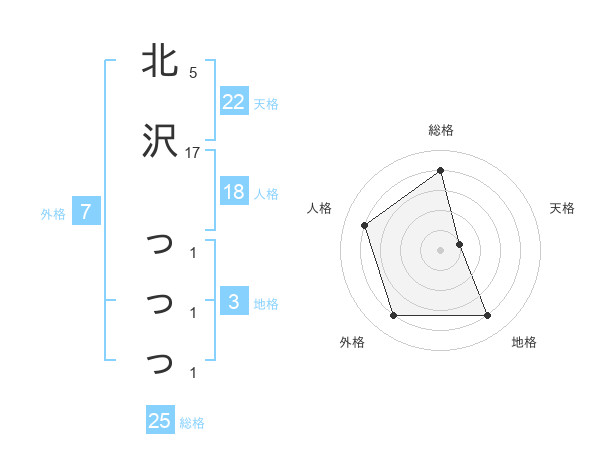 北沢 っっっさんの総格は25画の4点!