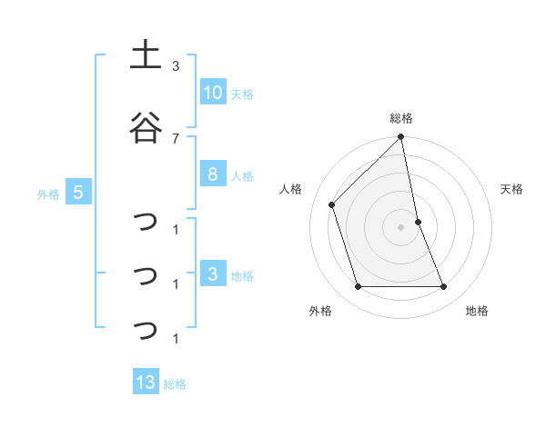 土谷 っっっさんを姓名の画数から五運を鑑定