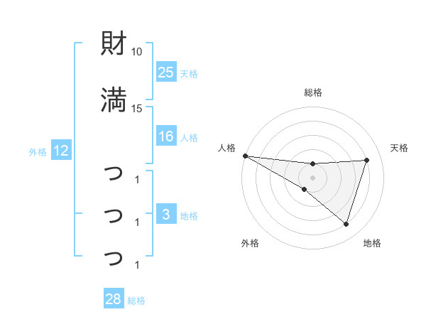 財満 っっっさんの地格は3画の4点!
