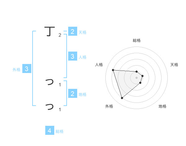 丁 っっさんの地格は2画の1点!