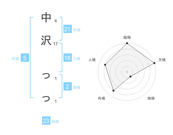 中沢 っっさんの総格は23画の5点!