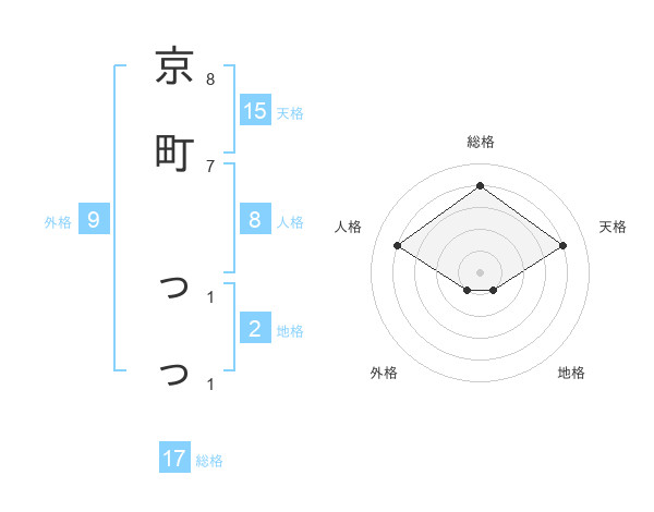 京町 っっさんの総格は17画の4点!