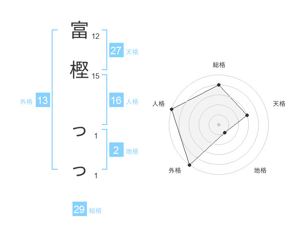 富樫 っっさんの総格は29画の4点!