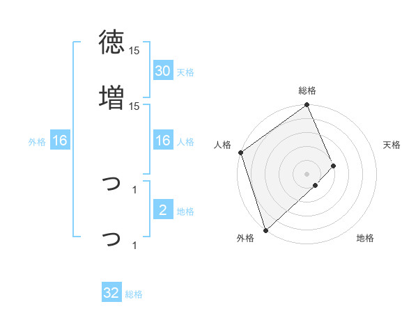 徳増 っっさんを姓名の画数から五運を鑑定