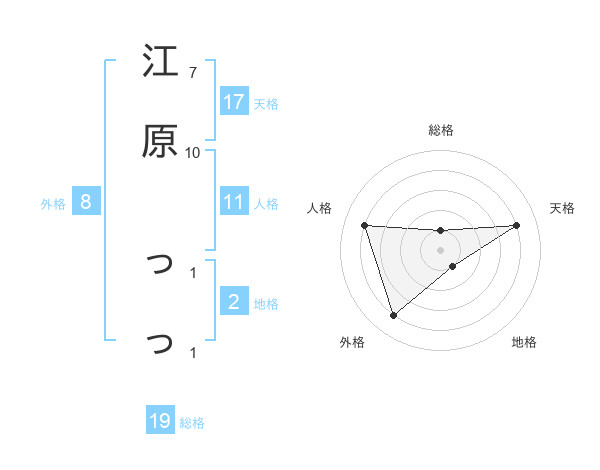 江原 っっさんの総格は19画の1点!