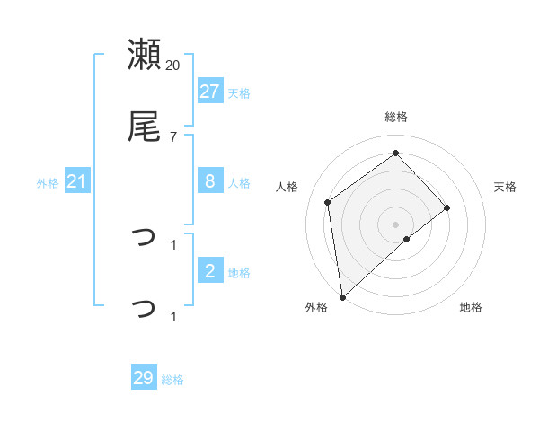 瀬尾 っっさんの総格は29画の4点!