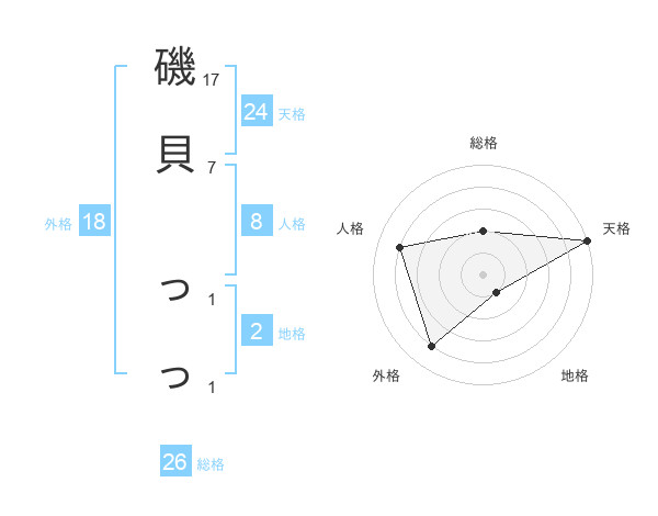 磯貝 っっさんの天格は24画の5点!
