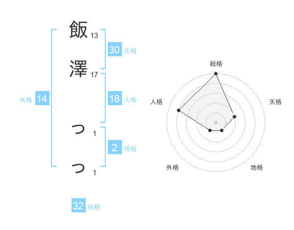 飯澤 っっさんの外格は14画の1点!