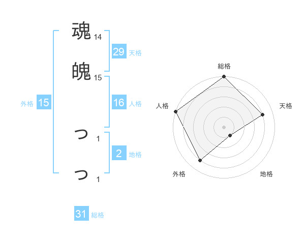 魂魄 っっさんの総格は31画の5点!