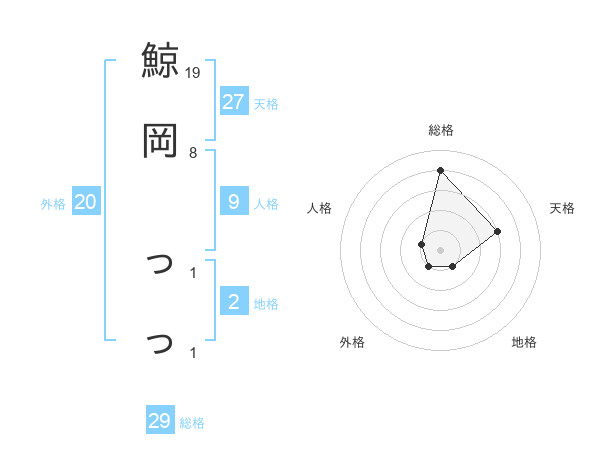 鯨岡 っっさんの総格は29画の4点!