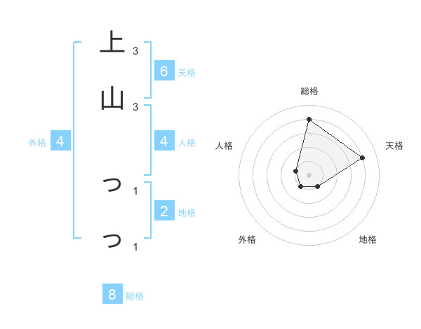 上山 っっさんの総格は8画の4点!