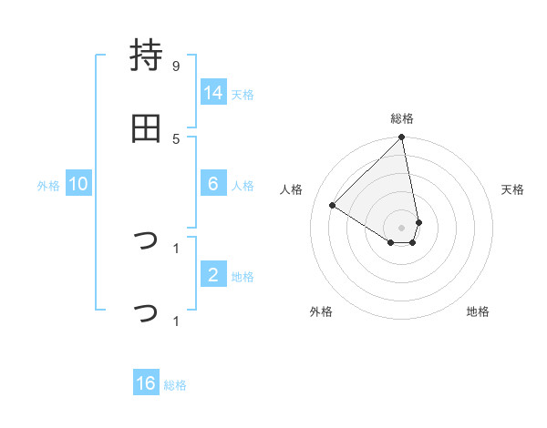 持田 っっさんの総格は16画の5点!